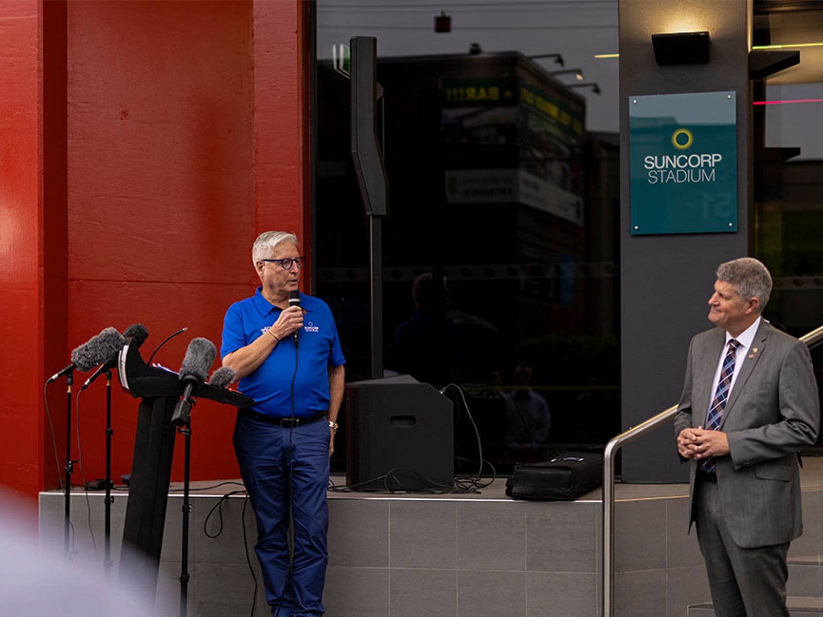 Suncorp Stadium General Manager Alan Graham introducing the proceedings.